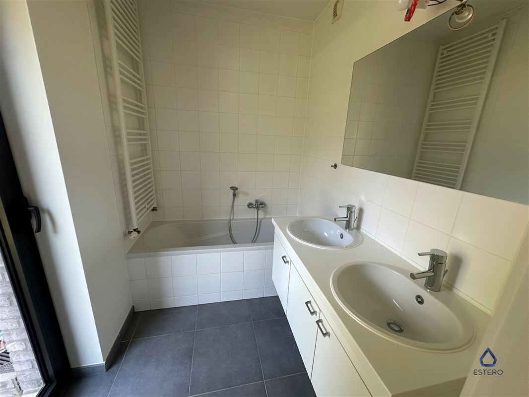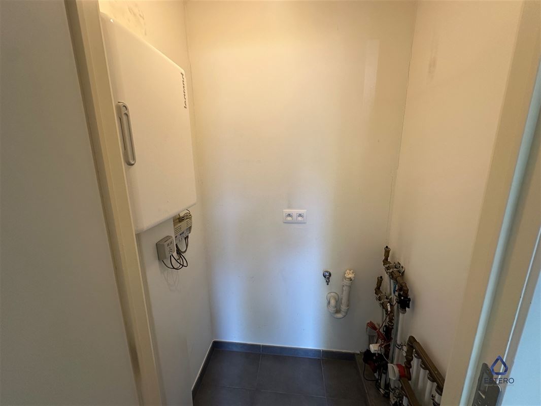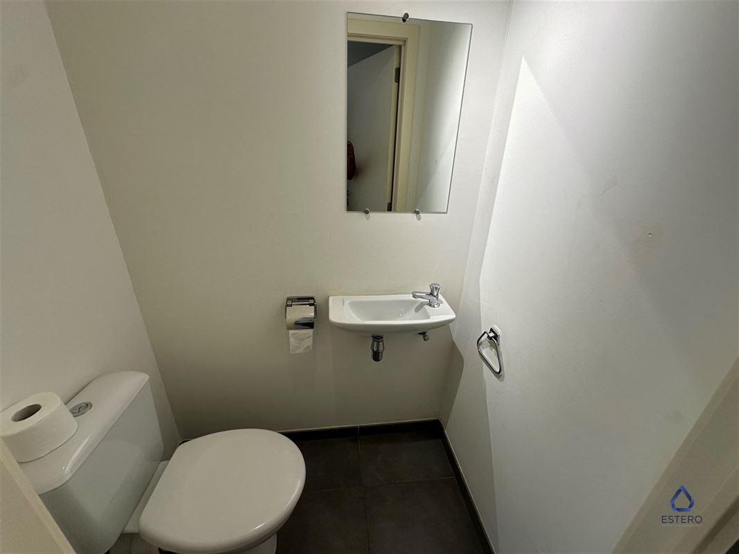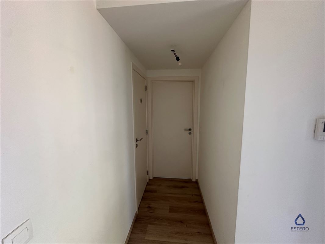 Je komt binnen via een ruime inkomhal die toegang biedt tot de leefruimte, het aparte toilet, de berging en de slaapkamer. De open leefruimte met volledig ingerichte keuken is licht en ruim dankzij de grote raampartijen. De slaapkamer beschikt over een aangrenzende badkamer voorzien van dubbele wastafel en ligbad.