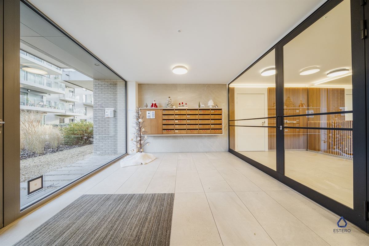 Het appartement is ruim en praktisch ingericht. De leefruimte geniet dankzij de grote schuiframen van licht en directe toegang tot het terras. De open keuken is voorzien van alle moderne apparatuur. Verder zijn er twee ruime slaapkamers, met een gemeenschappelijk balkon, een moderne badkamer met inloopdouche en dubbele wasbak, een apart toilet en een ruime berging.