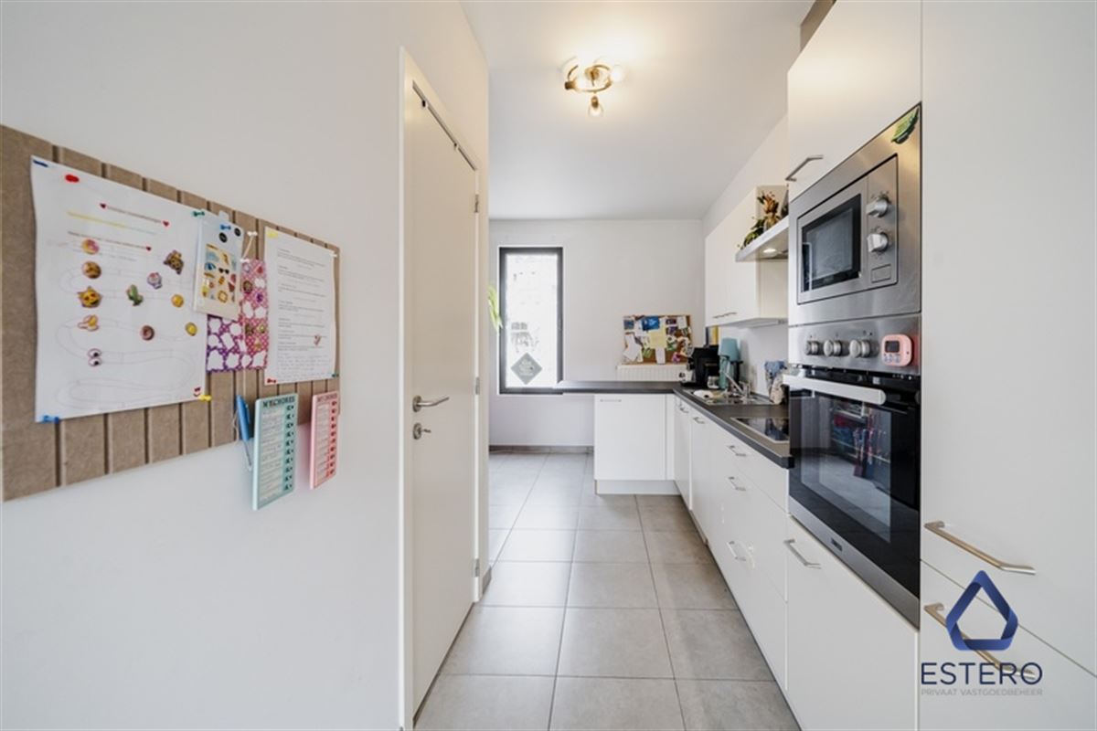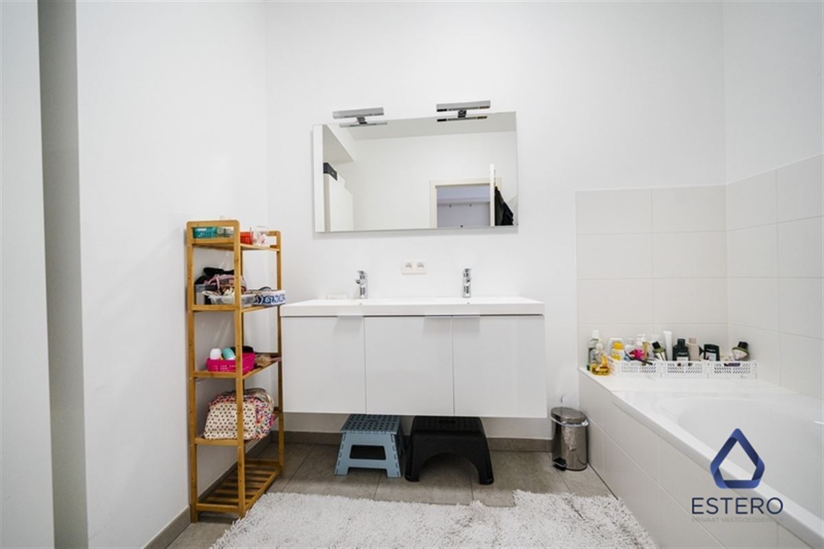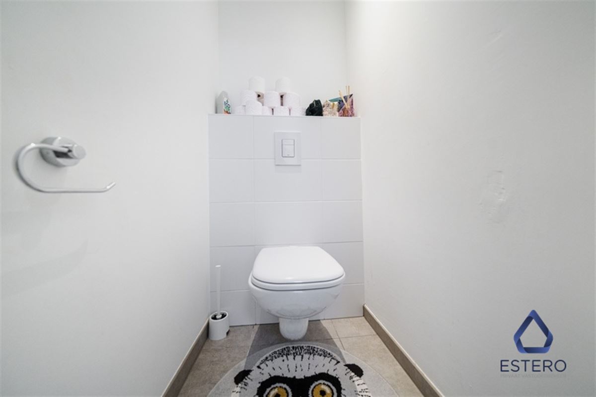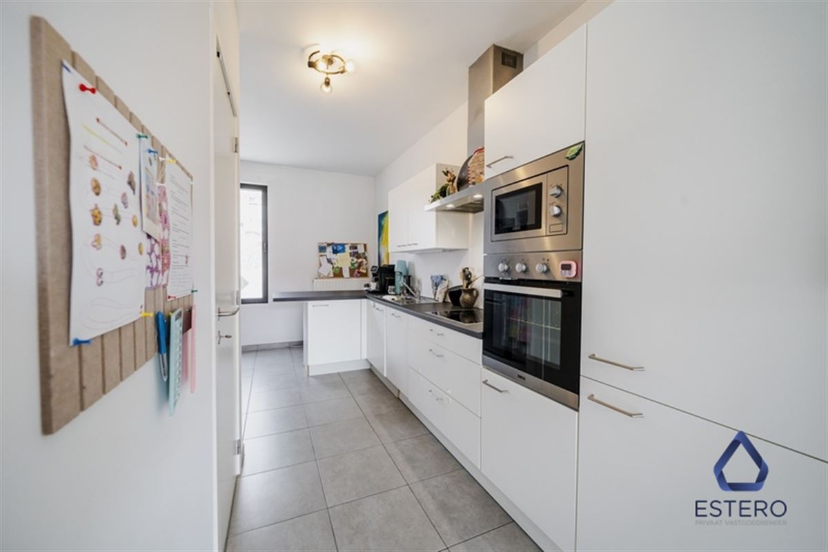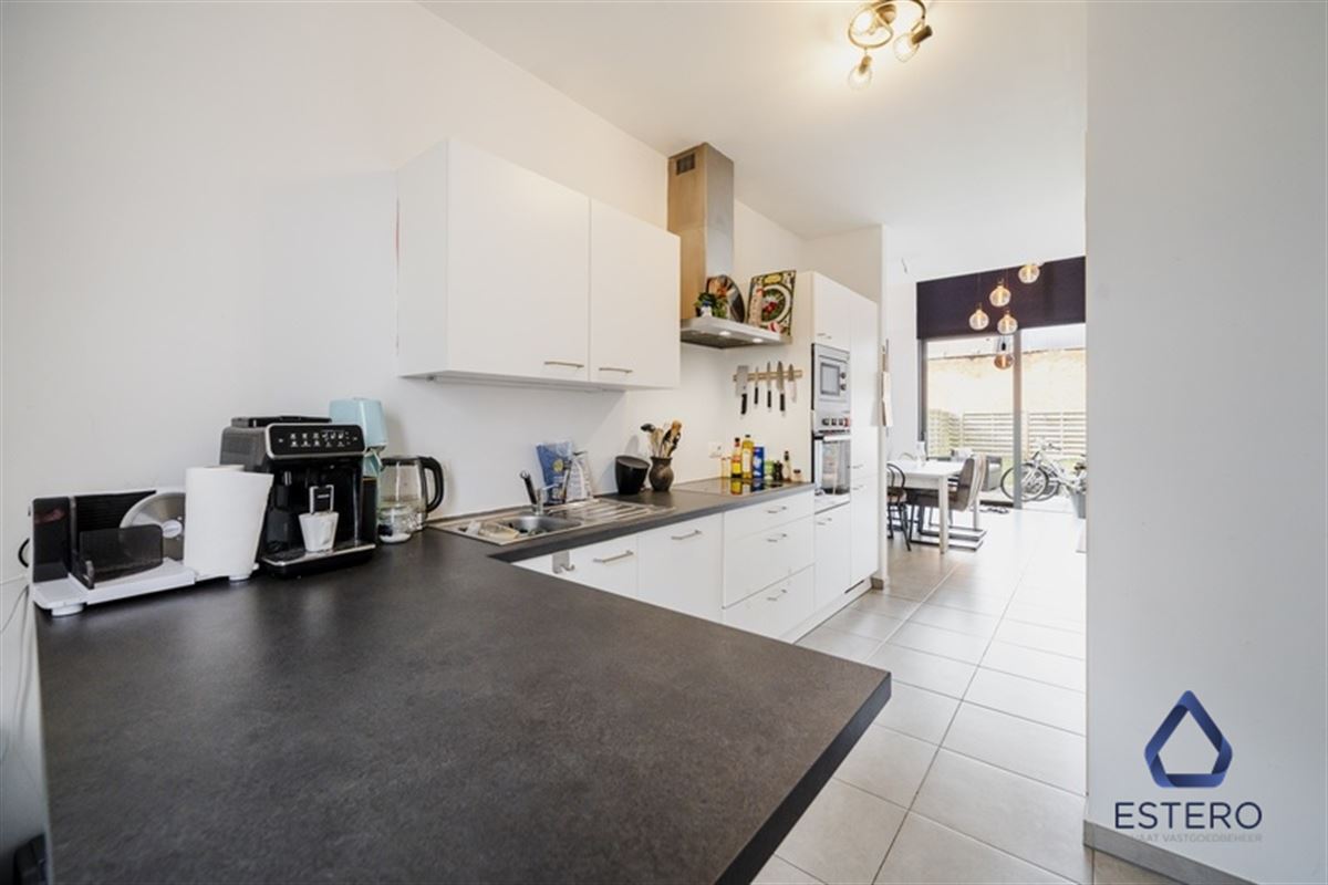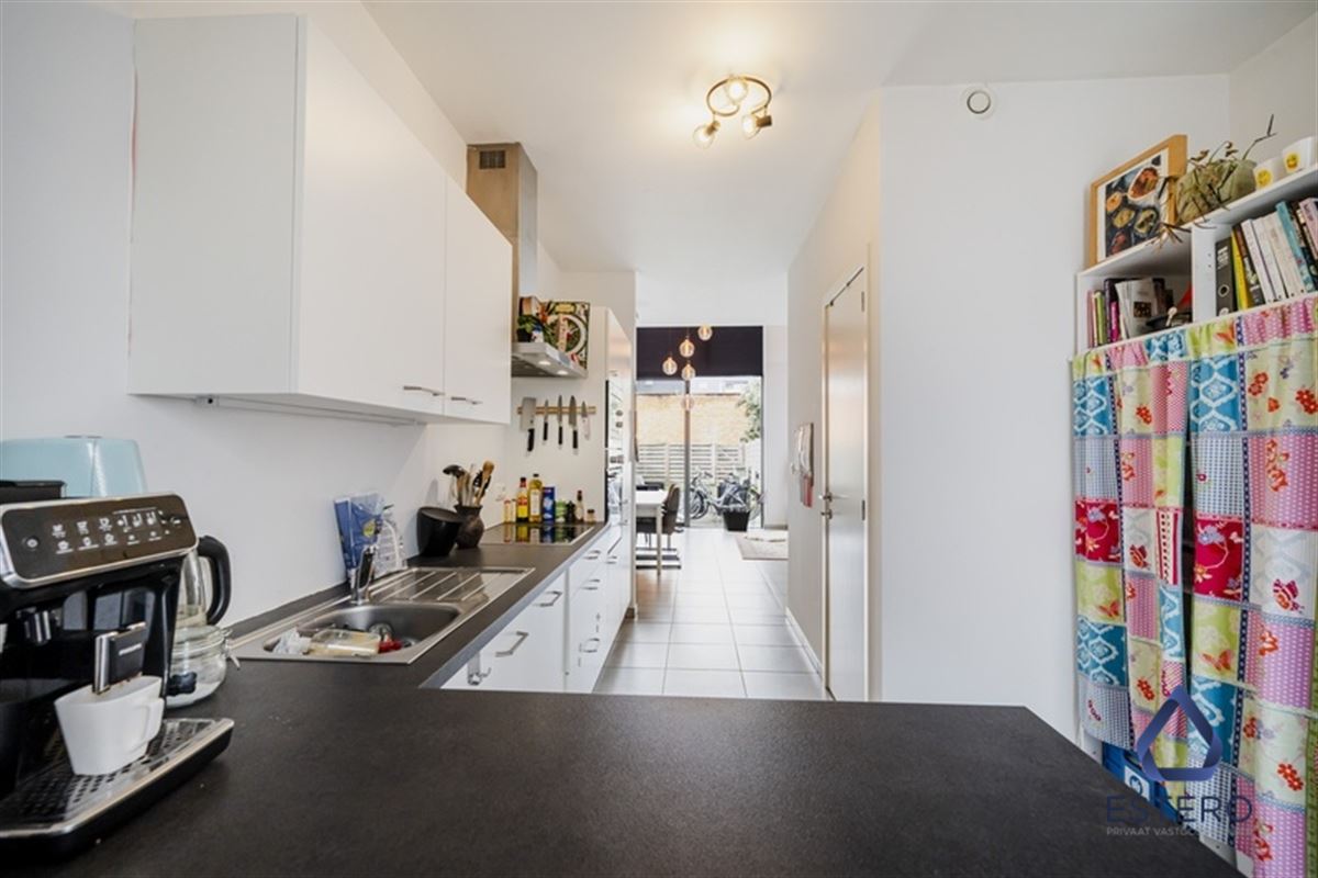 Op het gelijkvloers bevindt zich een lichtrijke woon- en eetkamer met een open, volledig ingerichte keuken. De keuken is uitgerust met alle nodige toestellen, waaronder een koelkast, kookfornuis, dampkap, vaatwasser en oven. Aansluitend aan de leefruimte vindt u een aangenaam terras met stadstuin, ideaal om in alle rust te genieten. Daarnaast beschikt de woning over een dubbele berging met aansluiting voor wasmachine en extra opbergruimte.