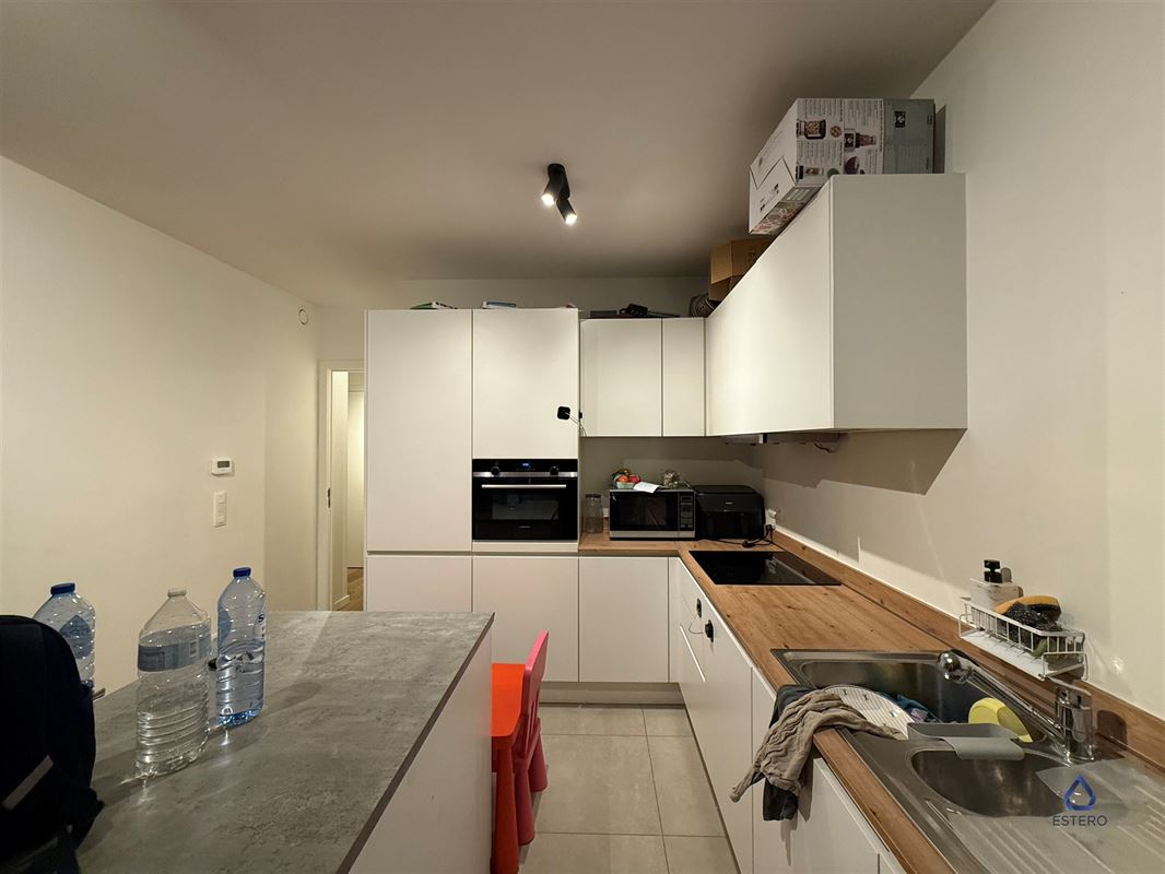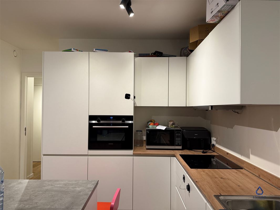 De open keuken is van alle comfort voorzien en is met zijn strakke ontwerp een echte blikvanger en biedt directe toegang tot een aangenaam terras. Aansluitend aan de keuken baadt de woonkamer in natuurlijk licht dankzij de grote ramen.