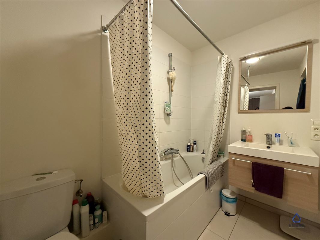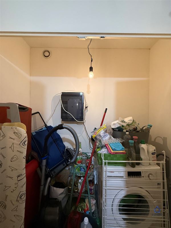 Verder beschikt de woning over een ruime slaapkamer, badkamer met toilet, ligbad en doucheset en een berging met aansluiting voor een wasmachine. Het appartement beschikt tevens over een privatieve kelderberging. Met de nabijheid van een metrohalte, is er een goede verbinding van en naar het centrum van Brussel.